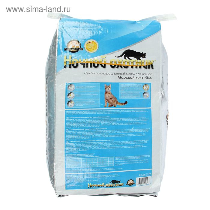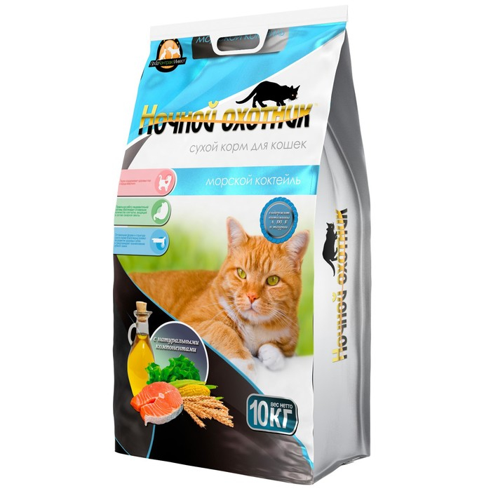 Сухой корм для кошек премиум класса "Ночной охотник" Морской коктейль, 10 кг