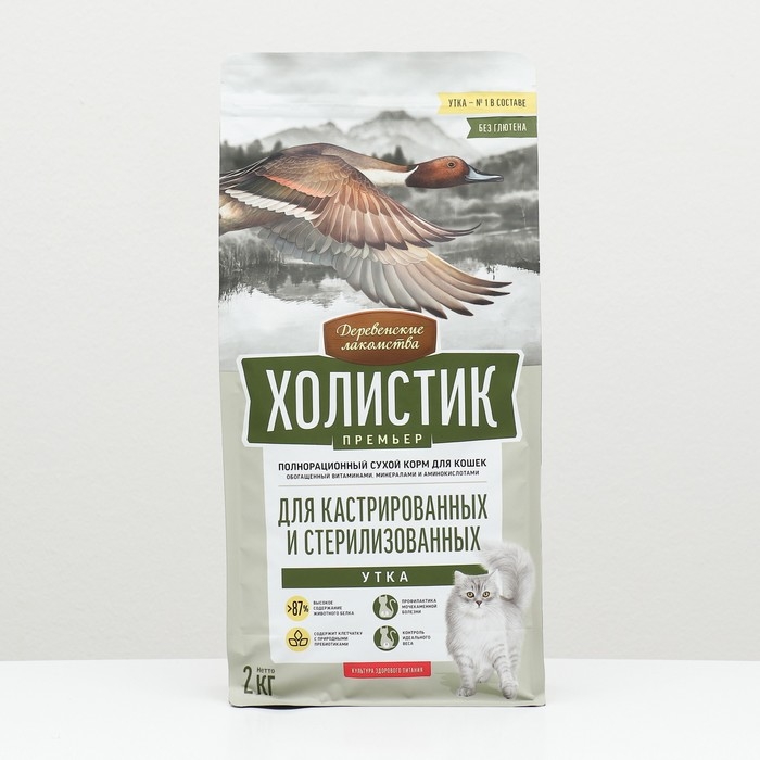 Сухой корм Холистик Премьер "Деревенские лакомства", д/стерил. и кастр. кош, утка, 2 кг