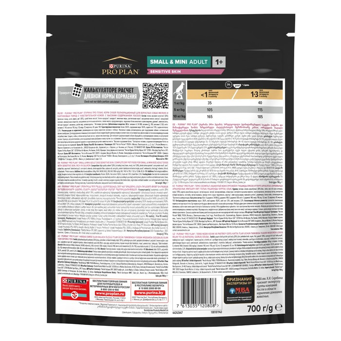 Сухой корм PRO PLAN для собак малых пород с чувствительной кожей, лосось/рис, 700 г