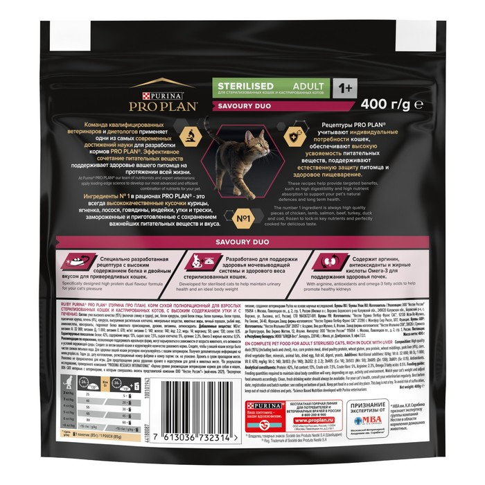 Сухой корм PRO PLAN для стерилизованных кошек, утка и печень, 400 г