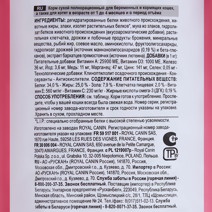 Сухой корм RC Mother and babycat для котят, беременных и лактирующих кошек, 4 кг