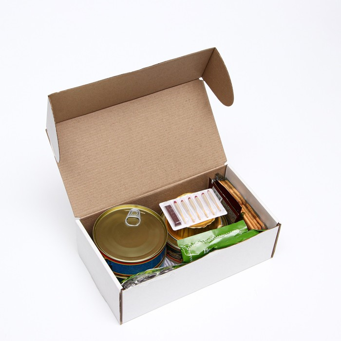 В состав входит всё необходимое, начиная от мясных консервов и заканчивая столовыми приборами. Каждый продукт в составе комплекта герметично запакован. Будьте уверены, что высокий срок годности и гибкие условия хранения не дадут пропасть вашему сухому пайку.