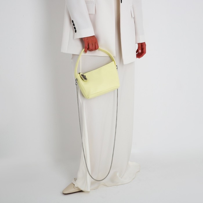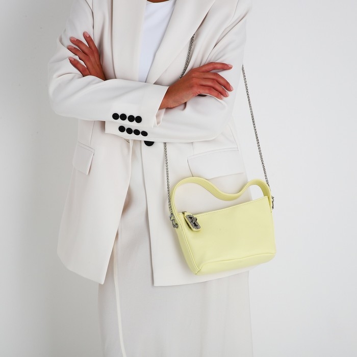 Сумка-багет на молнии, цепочка, цвет жёлтый