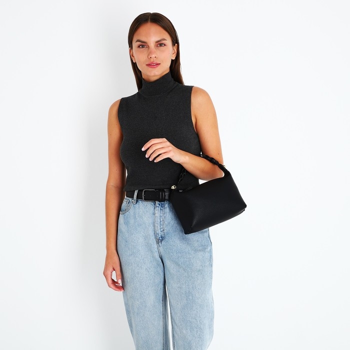 Сумка-багет на молнии, цвет чёрный