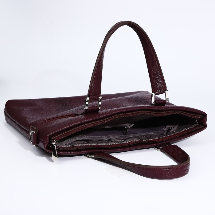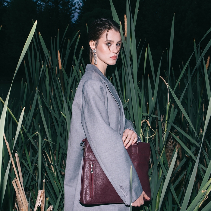 - Элегантный дизайн: Бордовый цвет и серебряная фурнитура придают сумке утончённый и профессиональный вид, идеально дополняя деловой стиль.