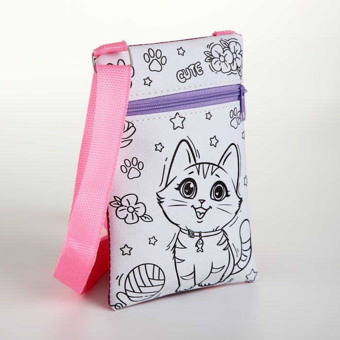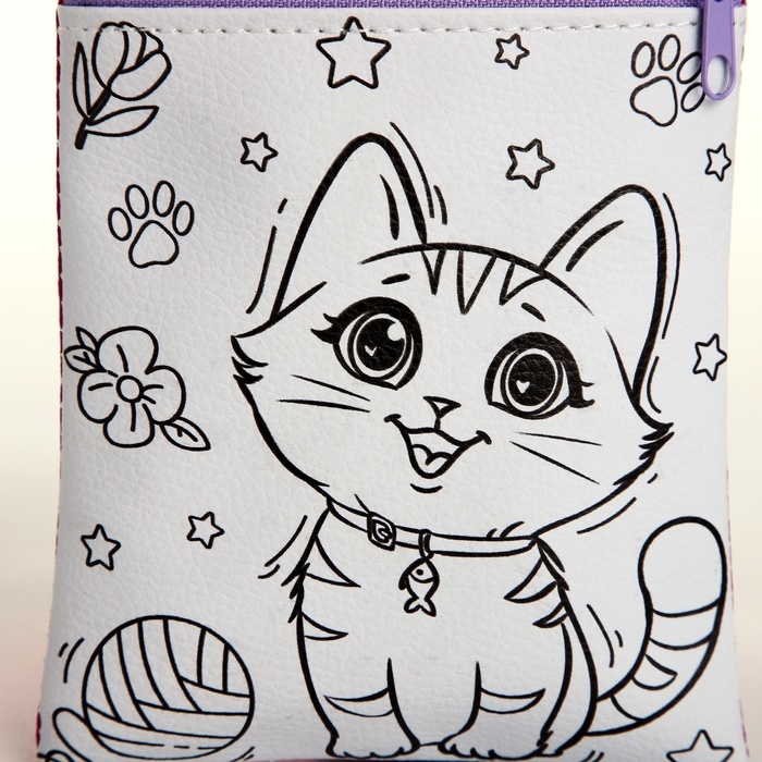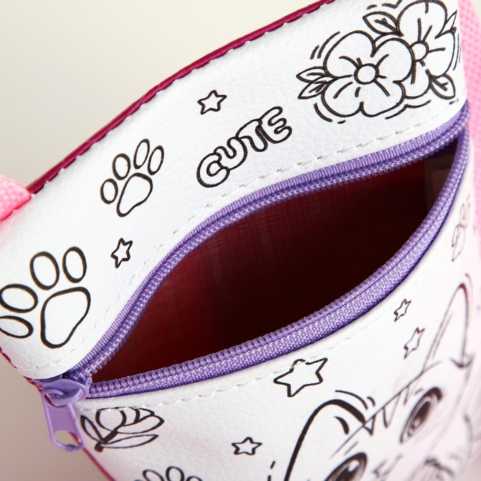 Сумка детская для девочки под раскраски "Котик с клубком" 16х11см