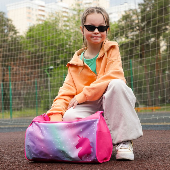 Сумка детская спортивная для девочки «Единорог», на молнии, наружный карман, цвет розовый