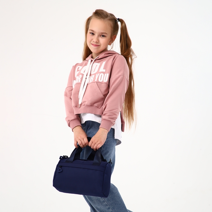 Сумка детская спортивная на молнии для девочки, наружный карман, цвет синий