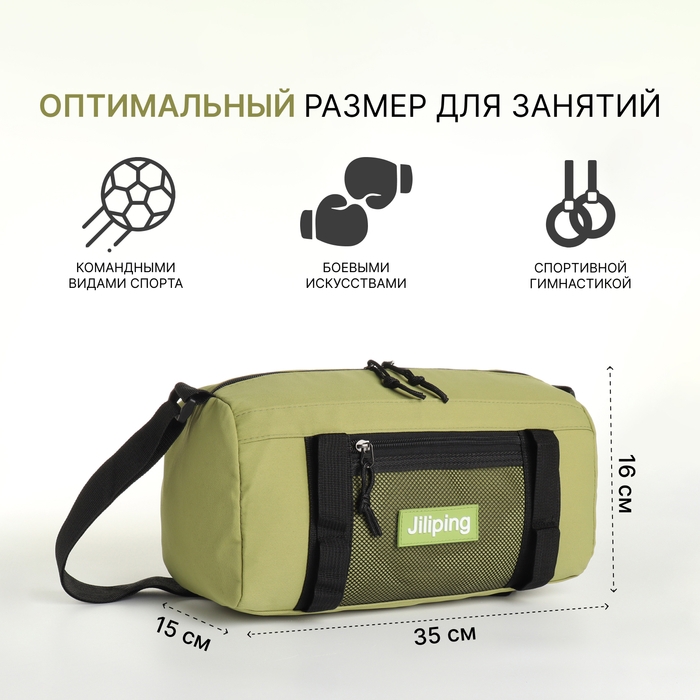 Сумка детская спортивная на молнии для мальчика, наружный карман, регулируемый ремень, цвет зелёный