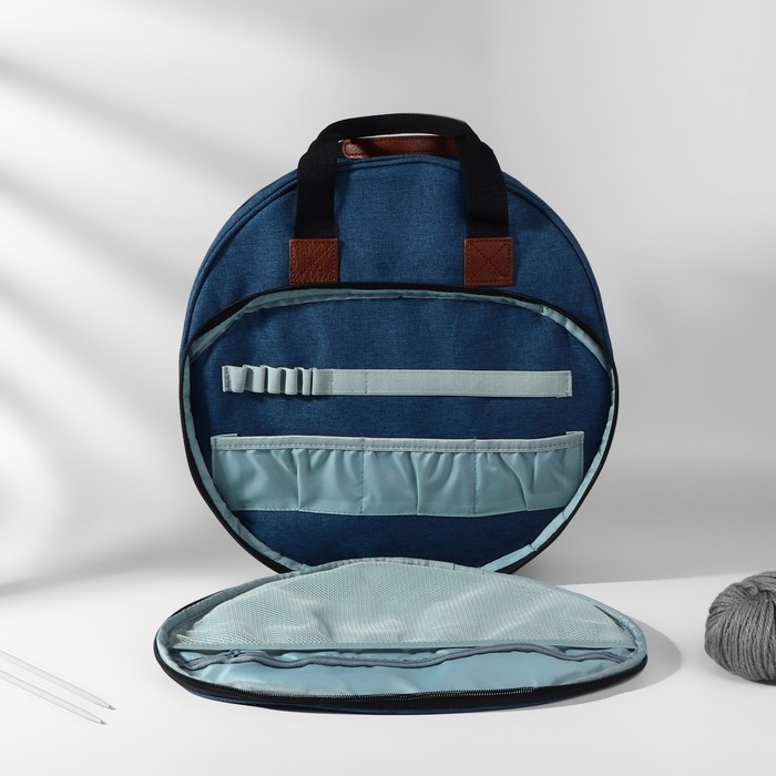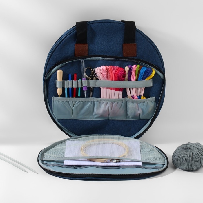Сумка для вышивания, 2 отделения на молнии, с ручками, d = 35 × 12 см, цвет синий