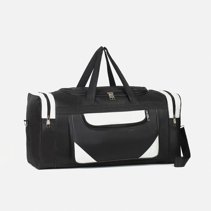 Сумка дорожная, 3 отдела на молниях, наружный карман, длинный ремень, цвет чёрный
