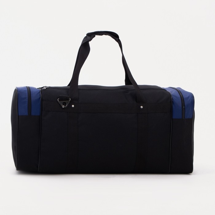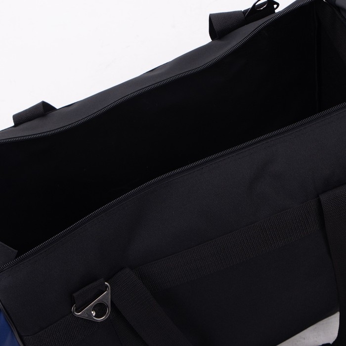Сумка дорожная, 3 отдела на молниях, наружный карман, длинный ремень, цвет чёрный/синий