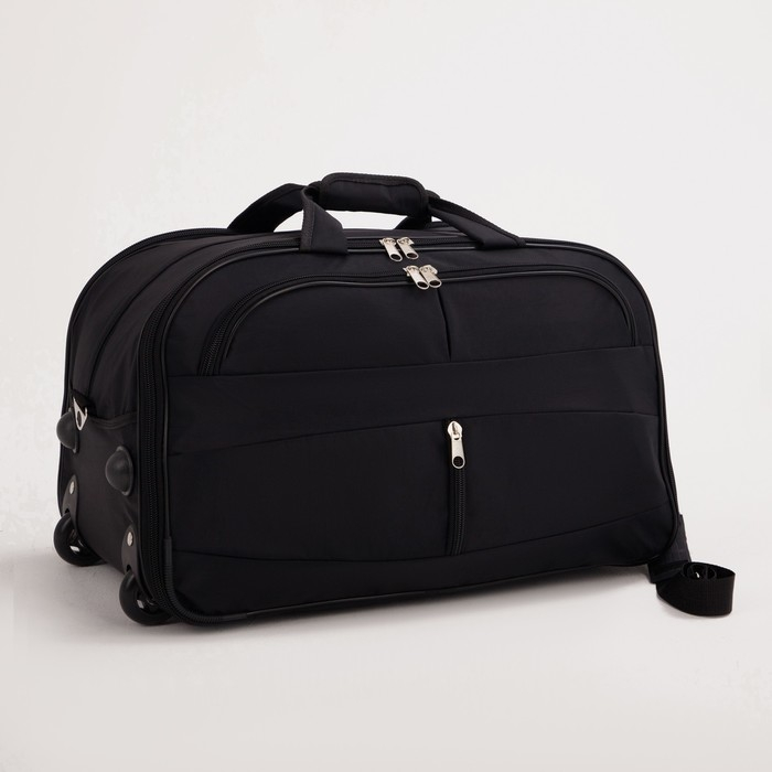 Сумка дорожная на колёсах, 2 отдела на молниях, 2 наружных кармана, длинный ремень, цвет чёрный