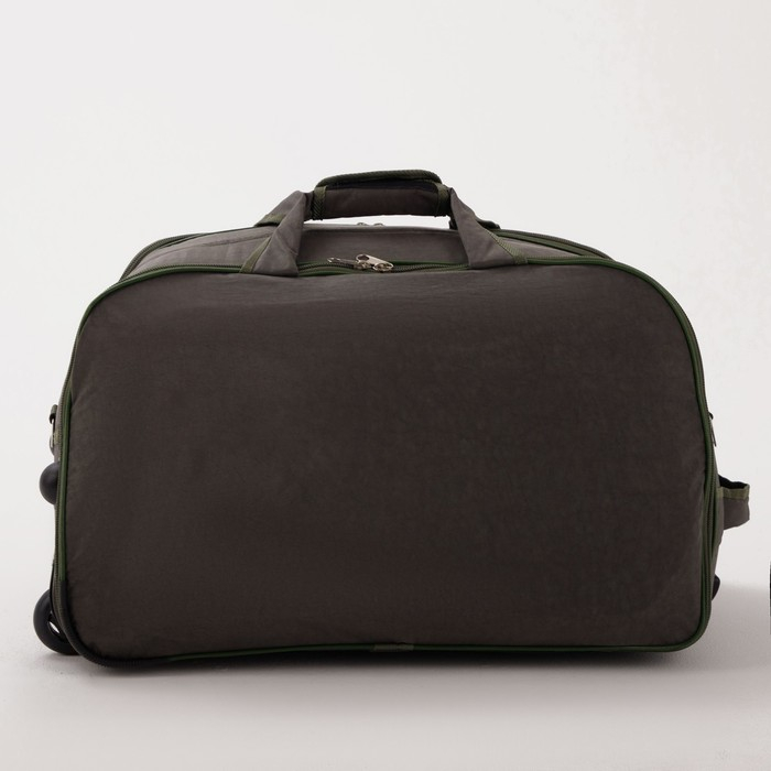 Сумка дорожная на колёсах, 2 отдела на молниях, 2 наружных кармана, длинный ремень, цвет хаки