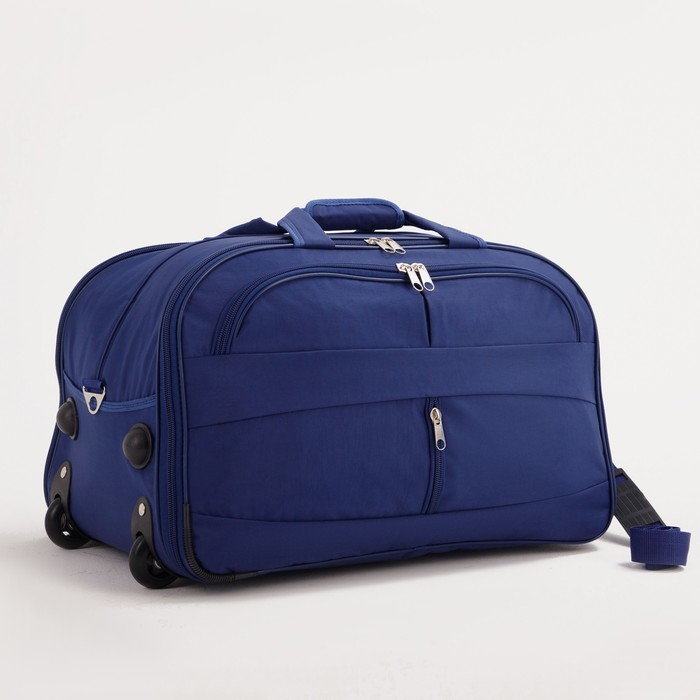 Сумка дорожная на колёсах, 2 отдела на молниях, 2 наружных кармана, длинный ремень, цвет синий