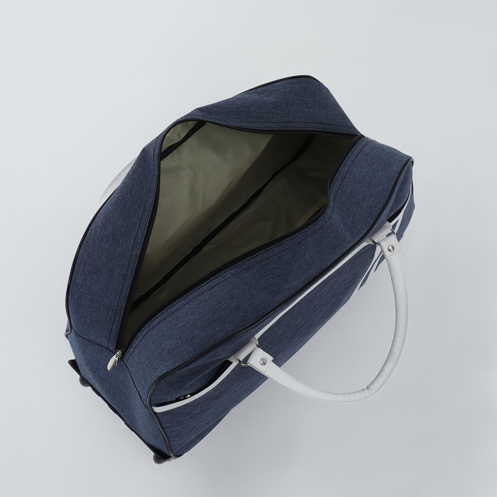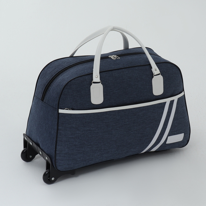 Сумка дорожная на колёсах, наружный карман, цвет синий
