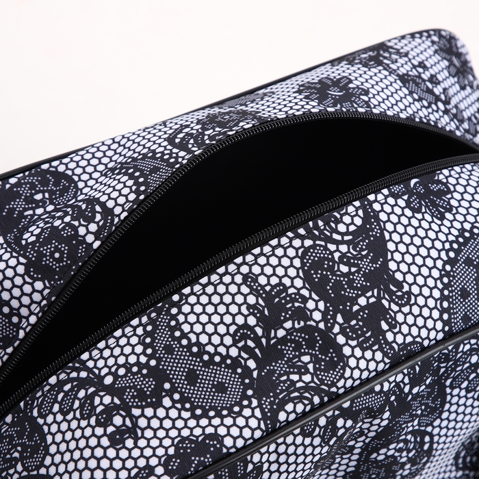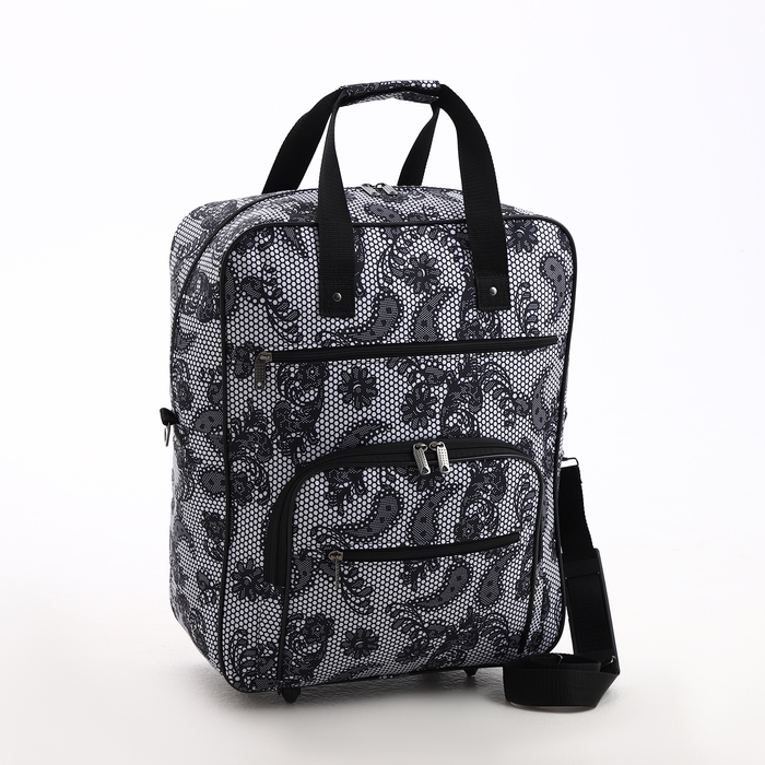 Сумка дорожная на колёсах, отдел на молнии, 3 наружных кармана, длинный ремень, цвет чёрный/белый