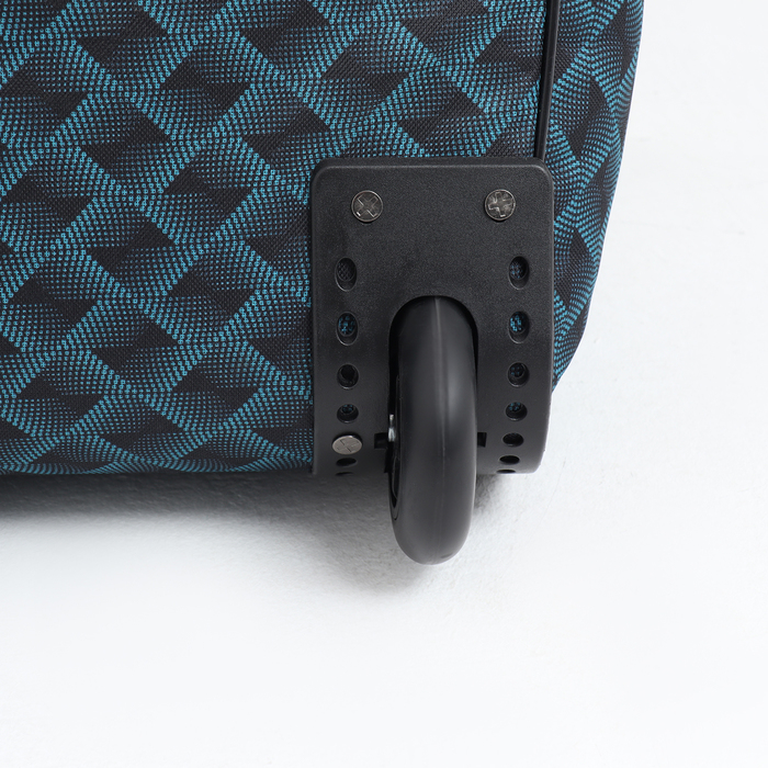 Эта модель изготовлена из прочного текстиля, что обеспечивает её долговечность и устойчивость к износу. Два надёжных колеса позволяют легко перемещать сумку по любым поверхностям, а удобная ручка упрощает процесс транспортировки. Сумка не увеличивается в объёме, что делает её идеальной для путешествий на короткие расстояния или поездок выходного дня.