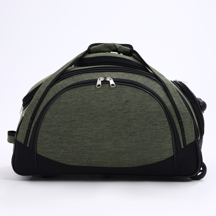 Сумка дорожная на колёсах, отдел на молнии, отдел для обуви, 3 наружных кармана, цвет чёрный/хаки