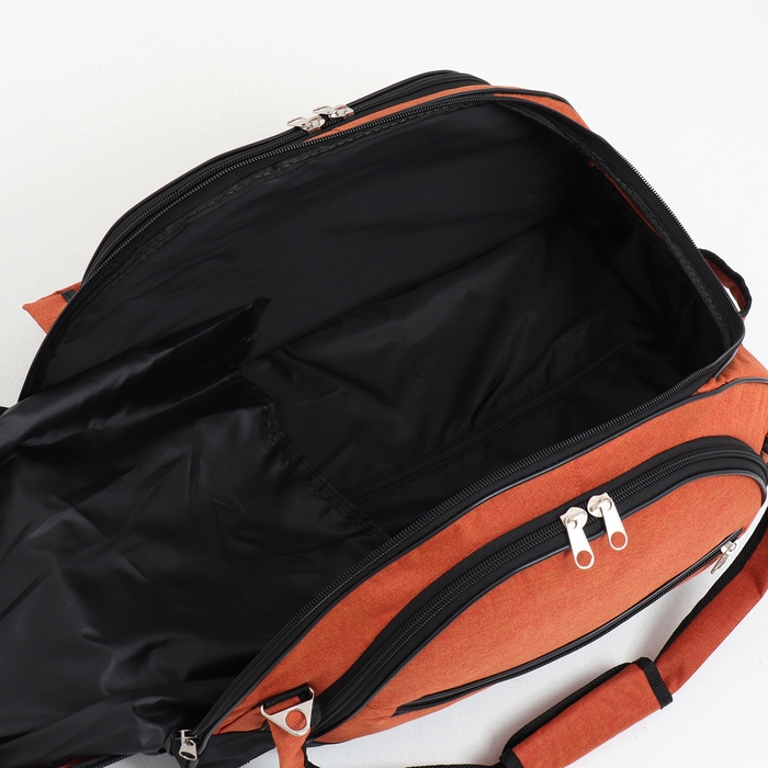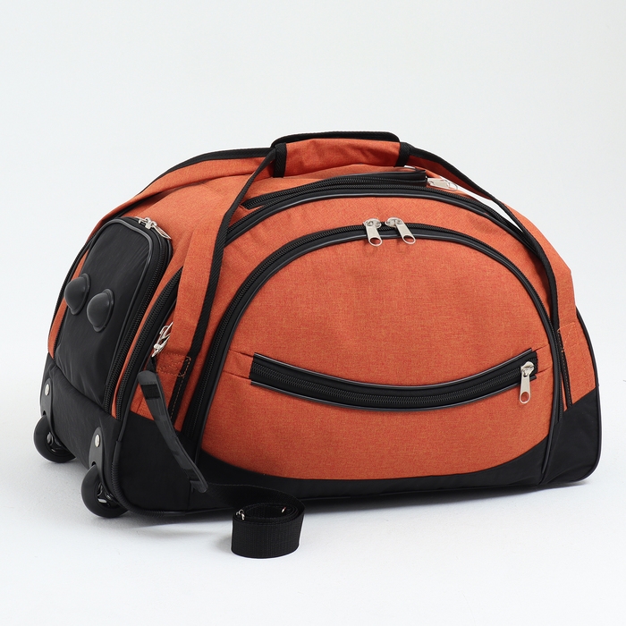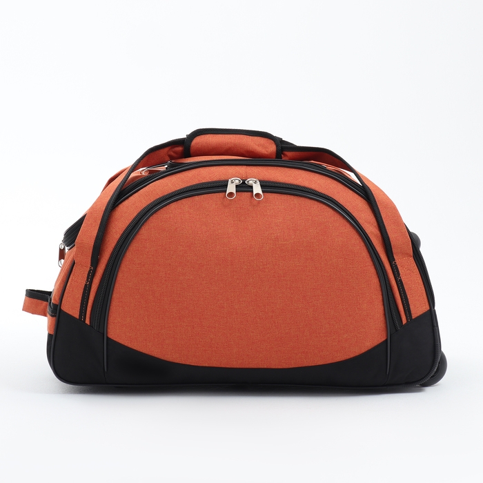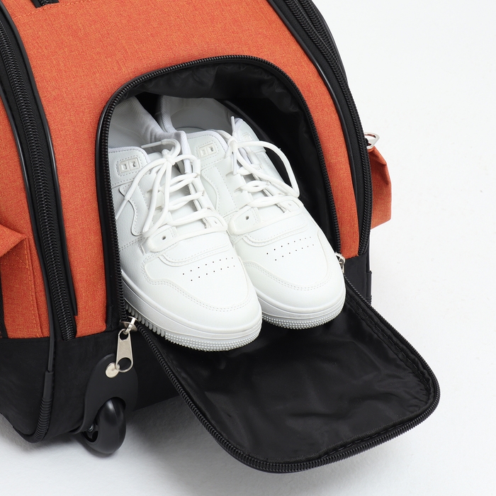 Сумка дорожная на колёсах, отдел на молнии, отдел для обуви, 3 наружных кармана, цвет чёрный/оранжевый