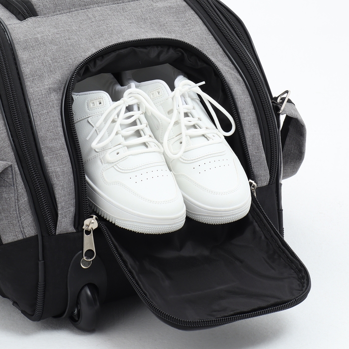 Сумка дорожная на колёсах, отдел на молнии, отдел для обуви, 3 наружных кармана, цвет чёрный/серый