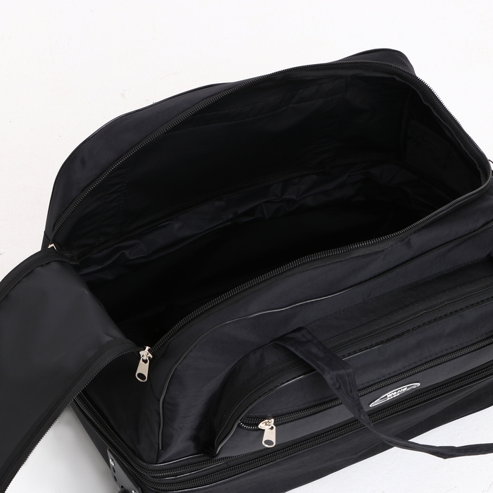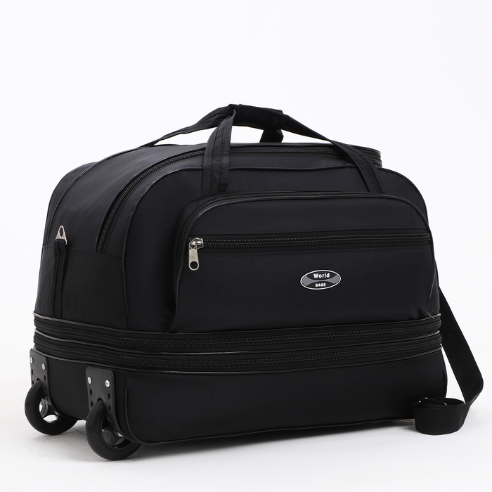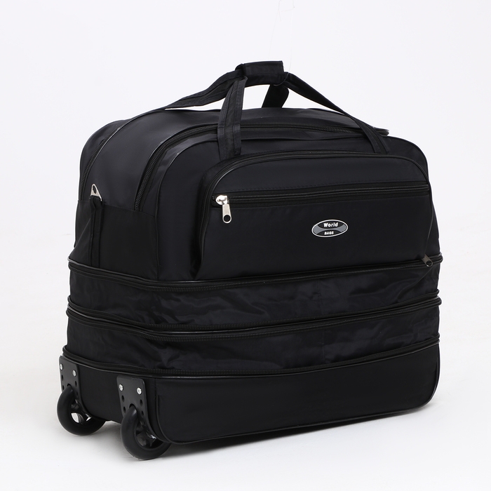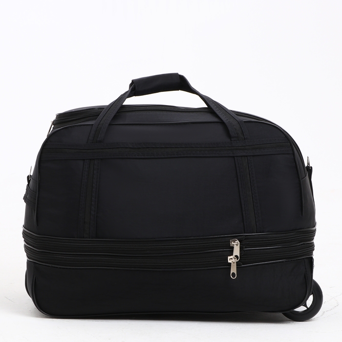 Сумка дорожная на колёсах, отдел на молнии, с увеличением, 2 наружных кармана, цвет чёрный