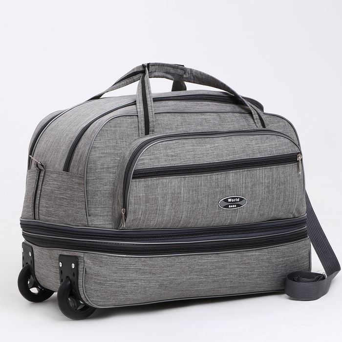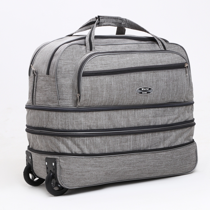 Сумка дорожная на колёсах, отдел на молнии, с увеличением, 2 наружных кармана, цвет серый