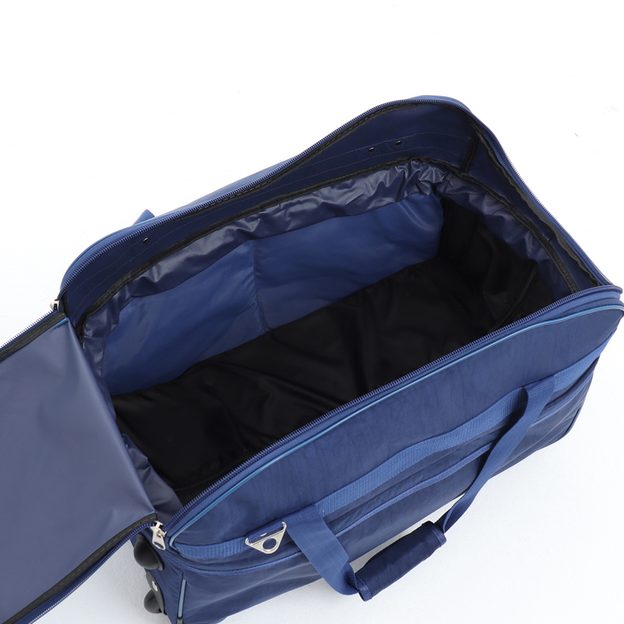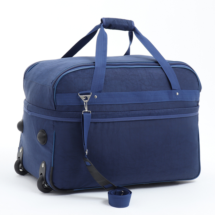 Сумка дорожная на колёсах, отдел на молнии, с увеличением, 2 наружных кармана, длинный ремень, цвет синий
