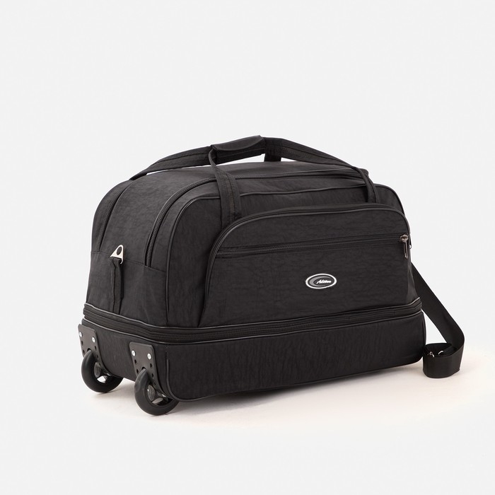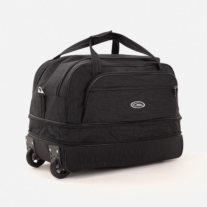 Сумка дорожная на колёсах, отдел на молнии, с увеличением, наружный карман, цвет чёрный