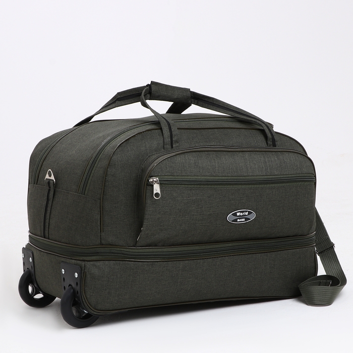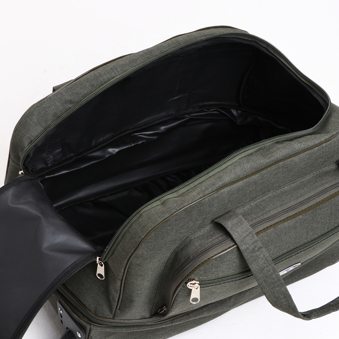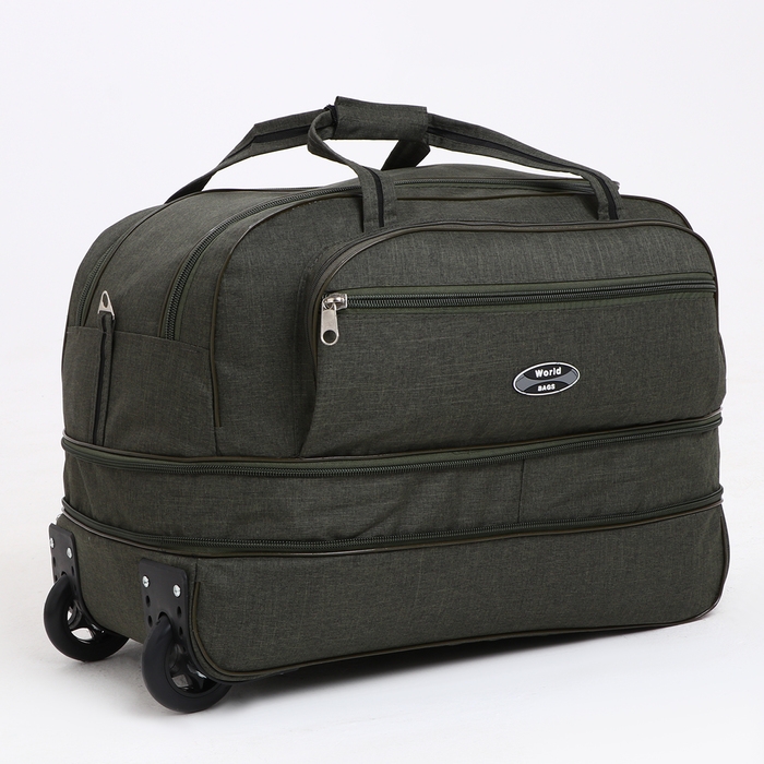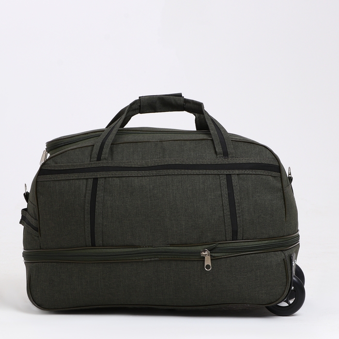 Сумка дорожная на колёсах, отдел на молнии, с увеличением, наружный карман, цвет хаки