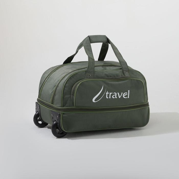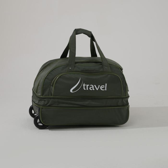 Сумка дорожная на колёсах, отдел на молнии с увеличением, наружный карман, цвет хаки