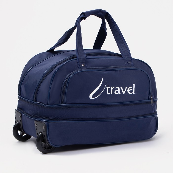 Сумка дорожная на колёсах, отдел на молнии, с увеличением, наружный карман, цвет синий