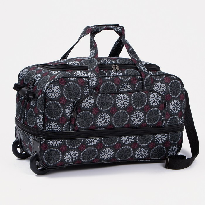 Удобный наружный карман позволяет держать под рукой мелкие вещи, такие как билеты или документы, а длинный ремень даёт возможность носить сумку через плечо, когда это необходимо. Два надёжных колеса обеспечивают лёгкость передвижения, даже если сумка полностью загружена.