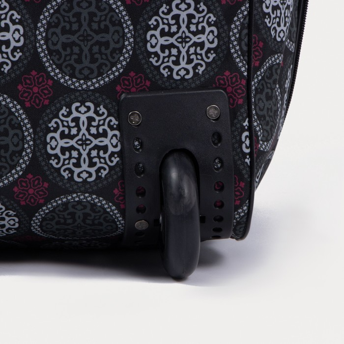 - Мобильность: колёса из пластика и удобная ручка делают перемещение с сумкой комфортным даже на неровных поверхностях.