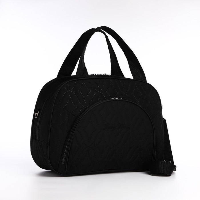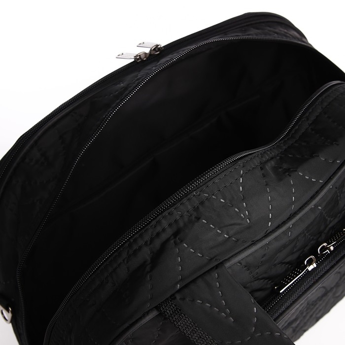 Сумка дорожная на молнии, 2 наружных кармана, длинный ремень, цвет чёрный