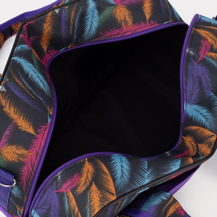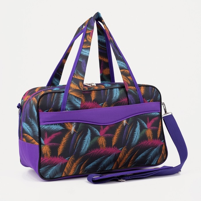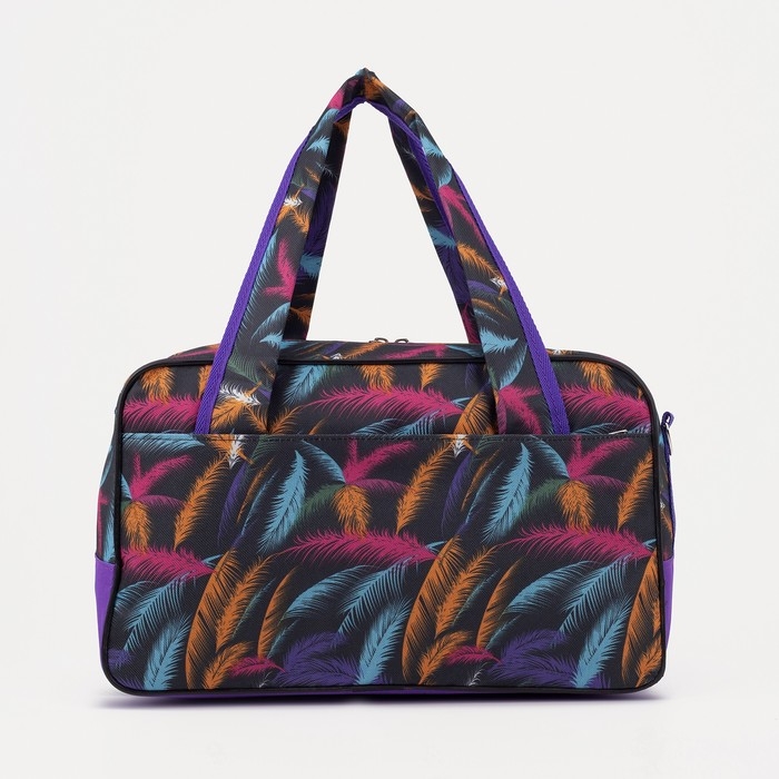 Сумка дорожная на молнии, 2 наружных кармана, длинный ремень, цвет чёрный/сиреневый