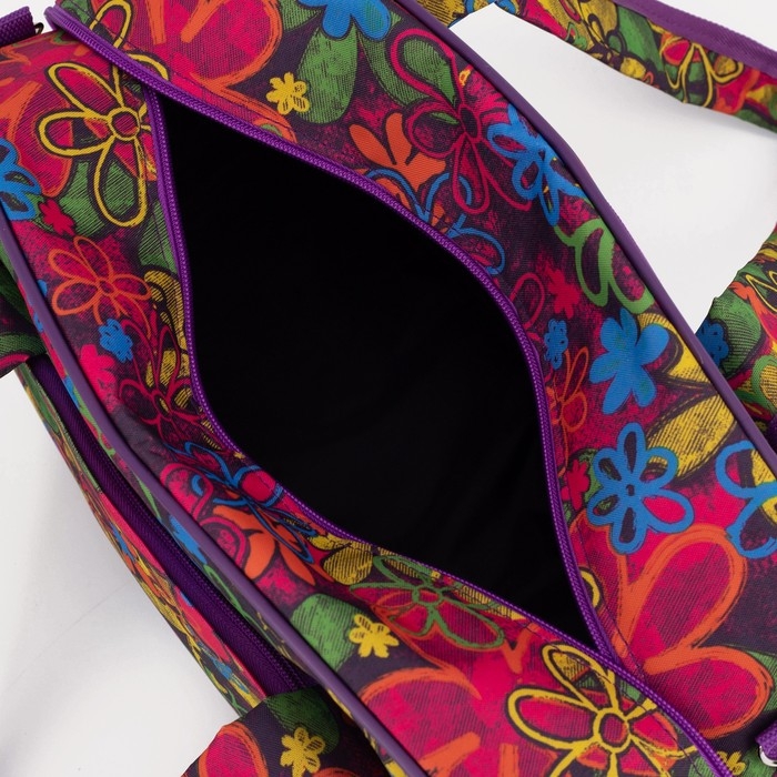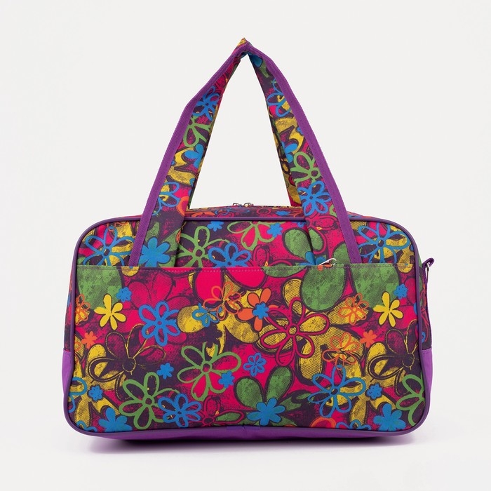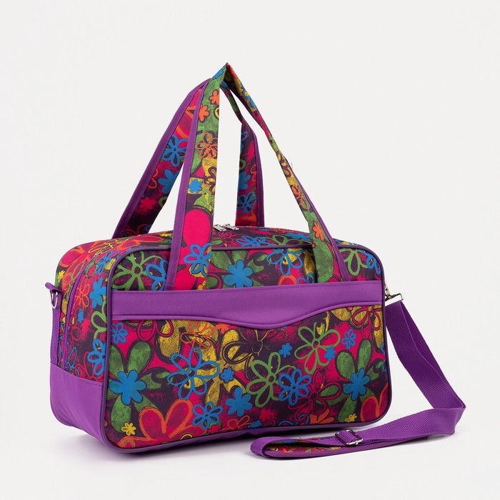 Сумка дорожная на молнии, 2 наружных кармана, длинный ремень, цвет фиолетовый
