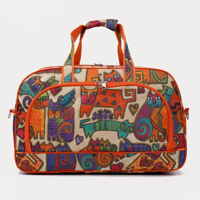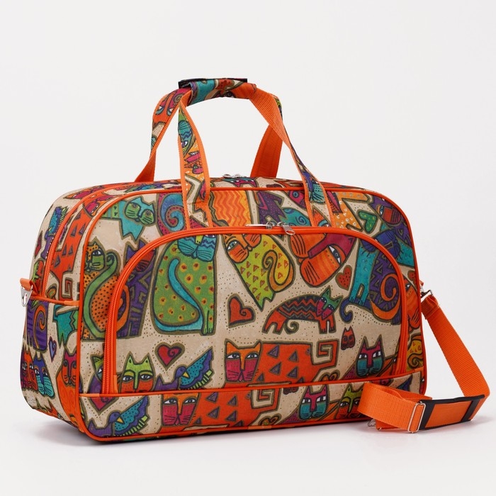 Сумка дорожная на молнии, 2 наружных кармана, длинный ремень, цвет оранжевый/разноцветный