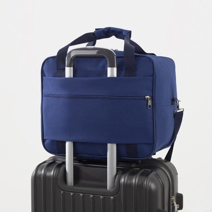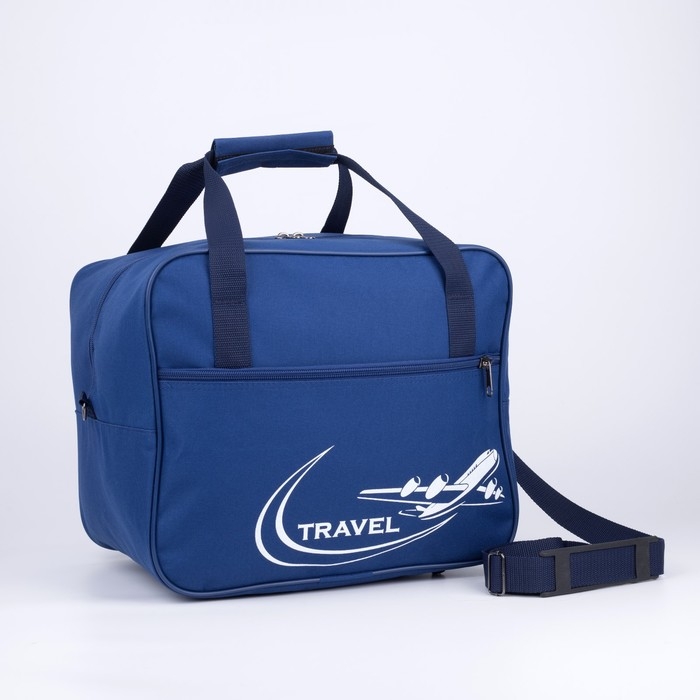 Сумка дорожная на молнии, 2 наружных кармана, длинный ремень, цвет синий