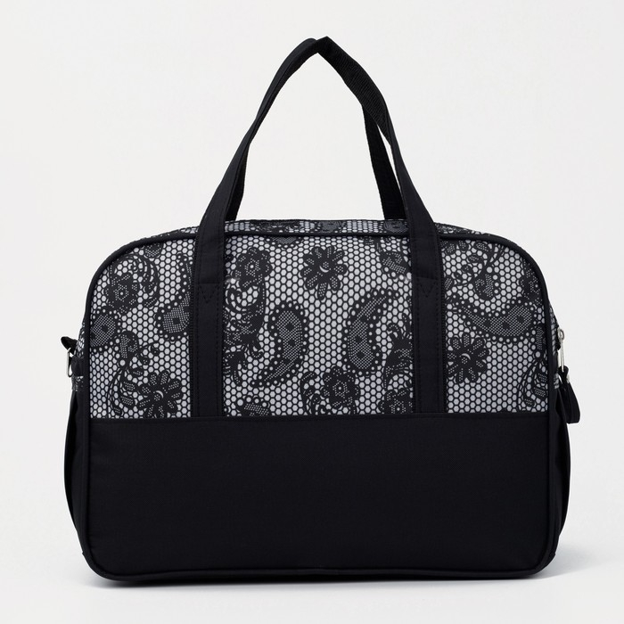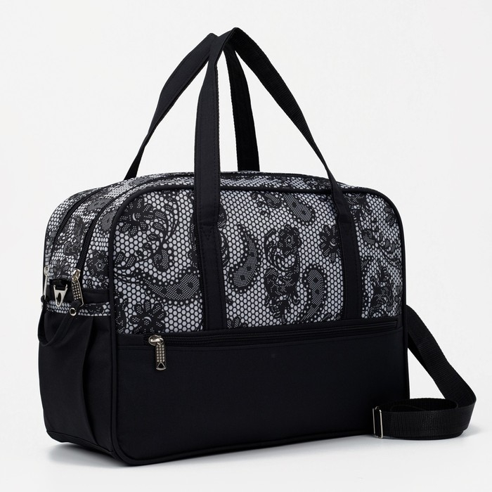 Сумка дорожная на молнии, 3 наружных кармана, длинный ремень, цвет чёрный