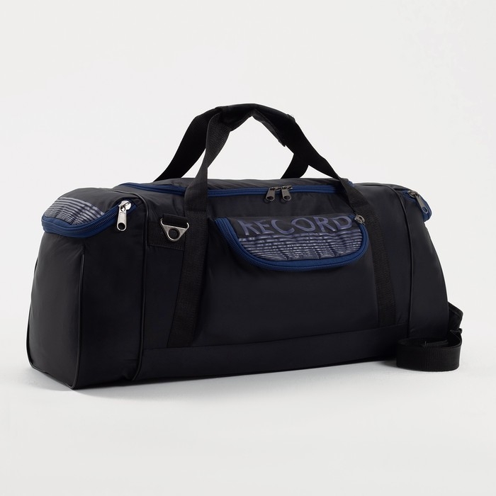 Сумка дорожная на молнии, 3 наружных кармана, длинный ремень, цвет чёрный