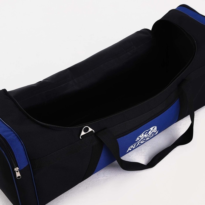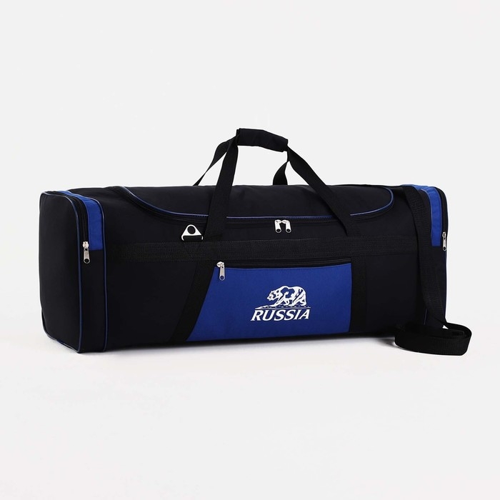 Сумка дорожная на молнии, 3 наружных кармана, длинный ремень, цвет чёрный/синий