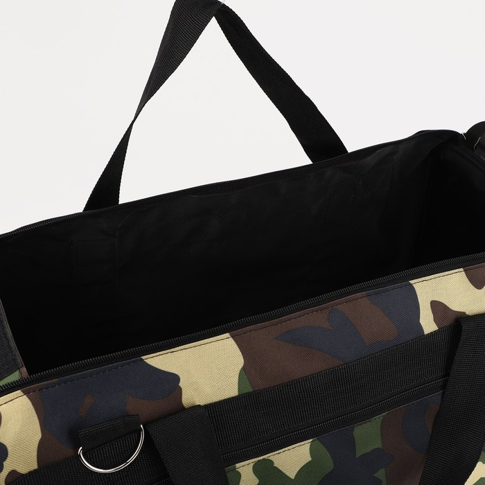 Сумка дорожная на молнии, 3 наружных кармана, длинный ремень, цвет камуфляж/коричневый