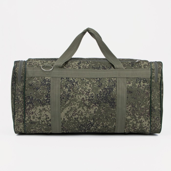 Сумка дорожная на молнии, 3 наружных кармана, длинный ремень, цвет камуфляж/зелёный