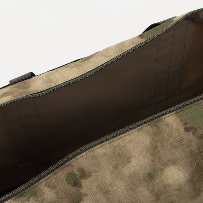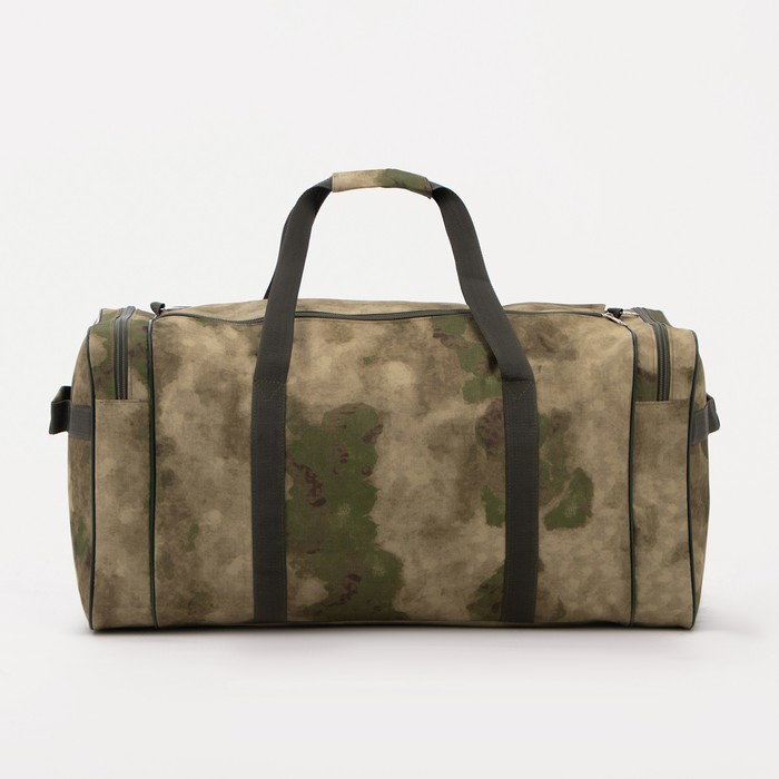Сумка дорожная на молнии, 3 наружных кармана, длинный ремень, цвет камуфляж/зелёный