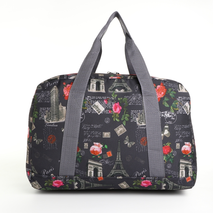 Сумка дорожная на молнии, наружный карман, цвет серый