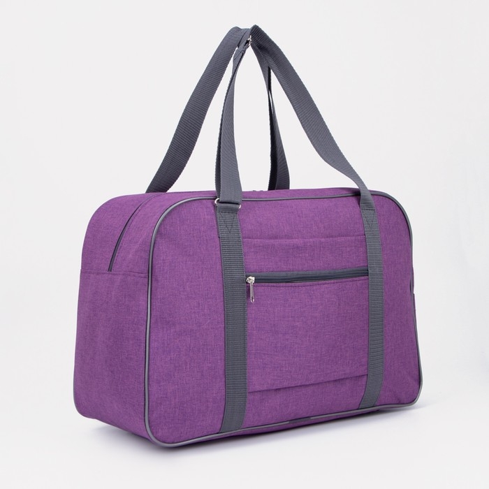Сумка дорожная на молнии, наружный карман, держатель для чемодана, цвет сиреневый