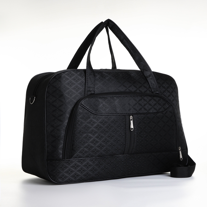 Сумка дорожная на молнии, наружный карман, длинный ремень, цвет чёрный