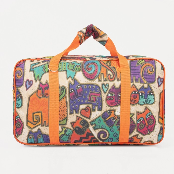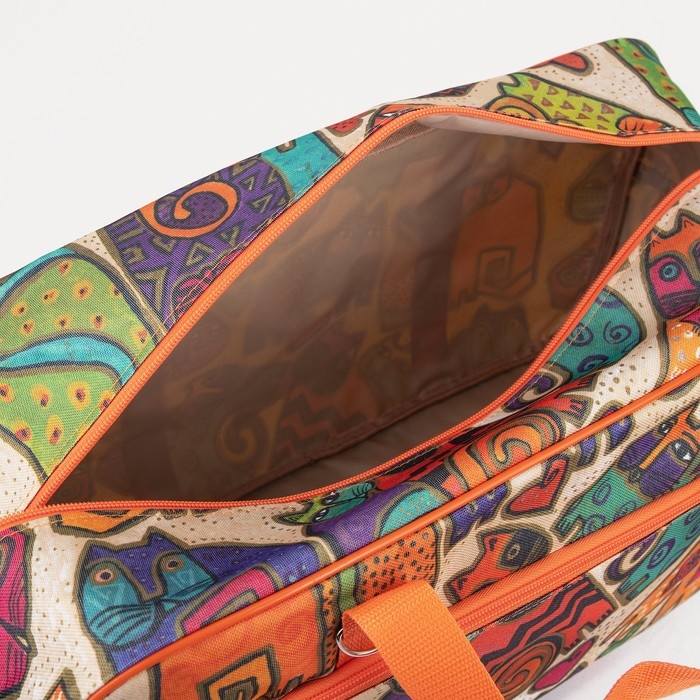 Сумка дорожная на молнии, наружный карман, длинный ремень, цвет оранжевый/разноцветный