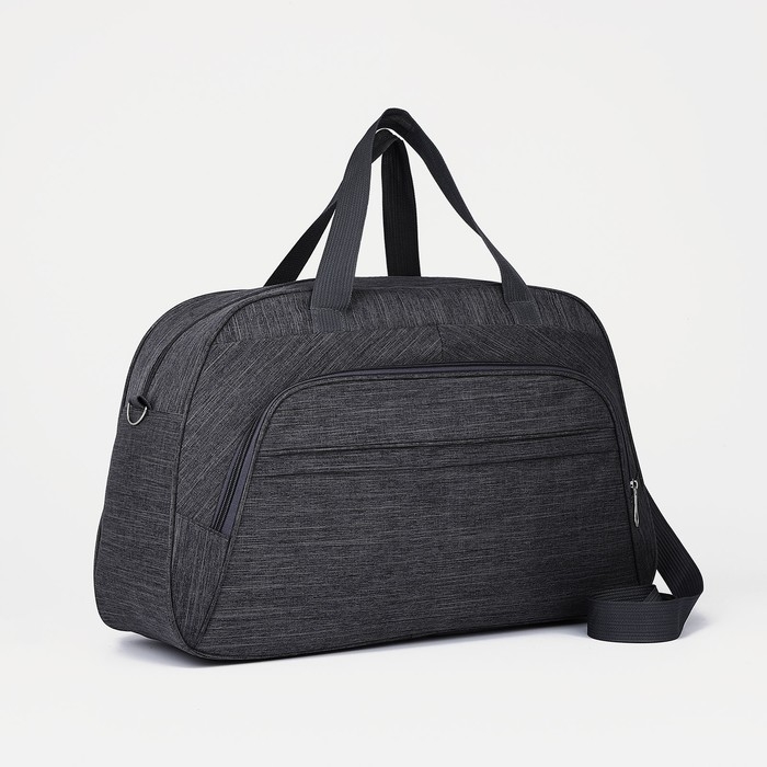 Сумка дорожная на молнии, наружный карман, длинный ремень, цвет серый